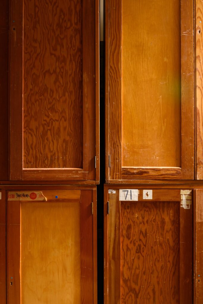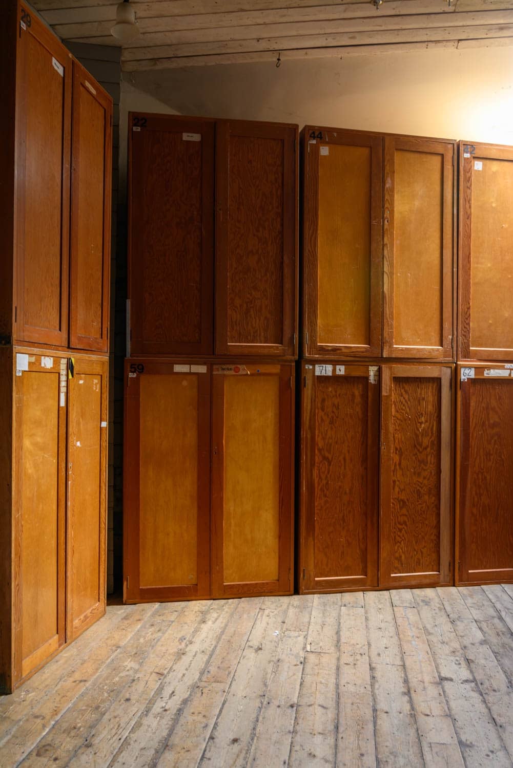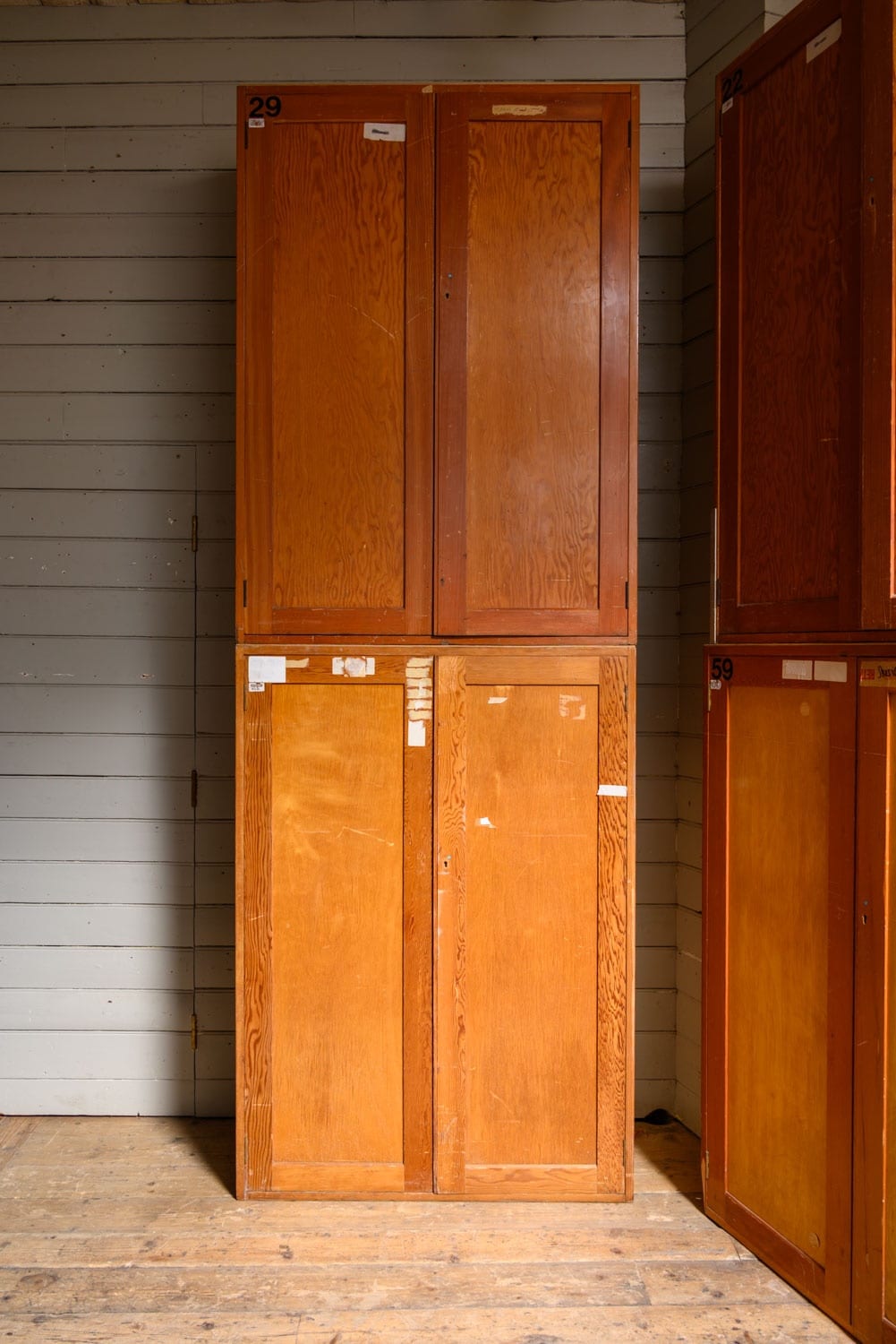 Midcentury museum cabinets salvaged from a prominent London institution.
