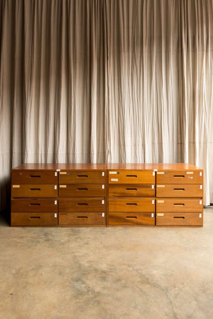 Low enough to be sat on, these would be great storage for a dressing room. Bought together, they could also be stacked to form a chest of drawers.