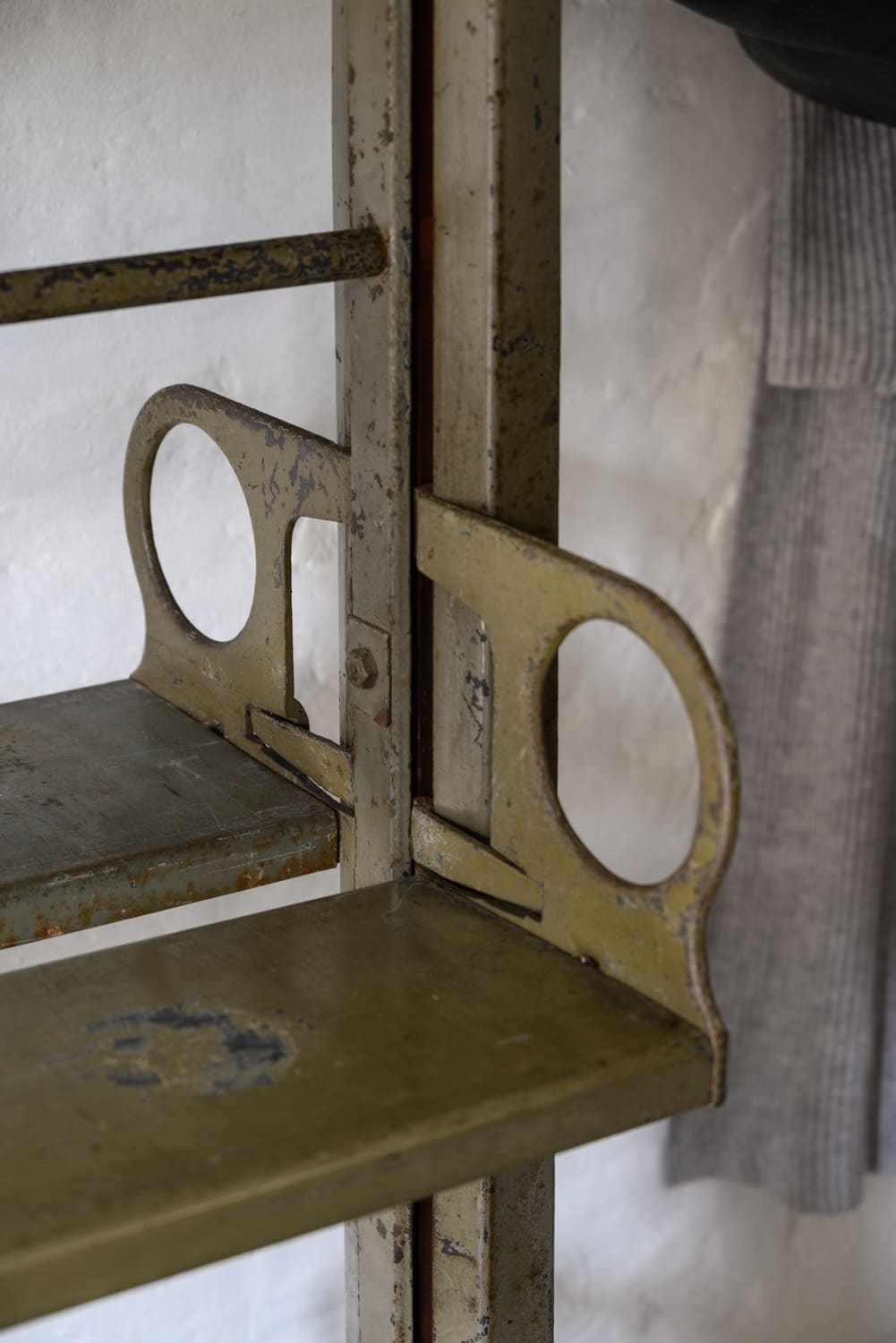 They named it "perfect adjustable shelving" – extremely versatile, as the brackets run up and down a groove in the upright and are easily locked in any position; it can be configured in numerous ways for bookshelves, clothes hanging, home and shop use etc.