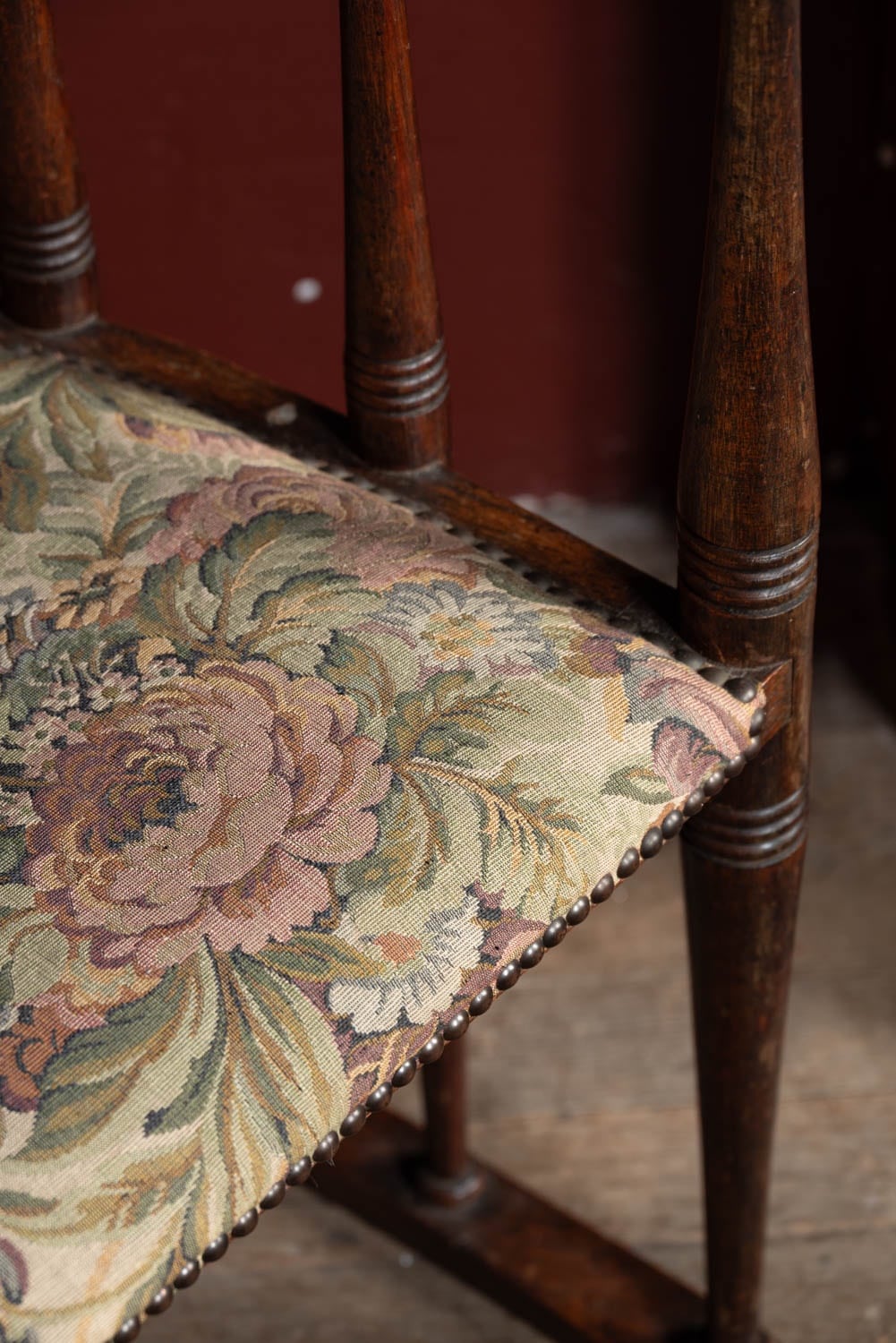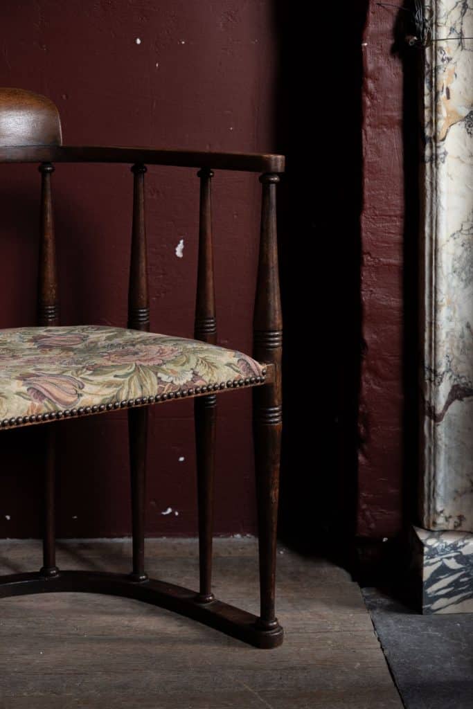 Believed to be original upholstery, with horse hair stuffing and restored webbing.