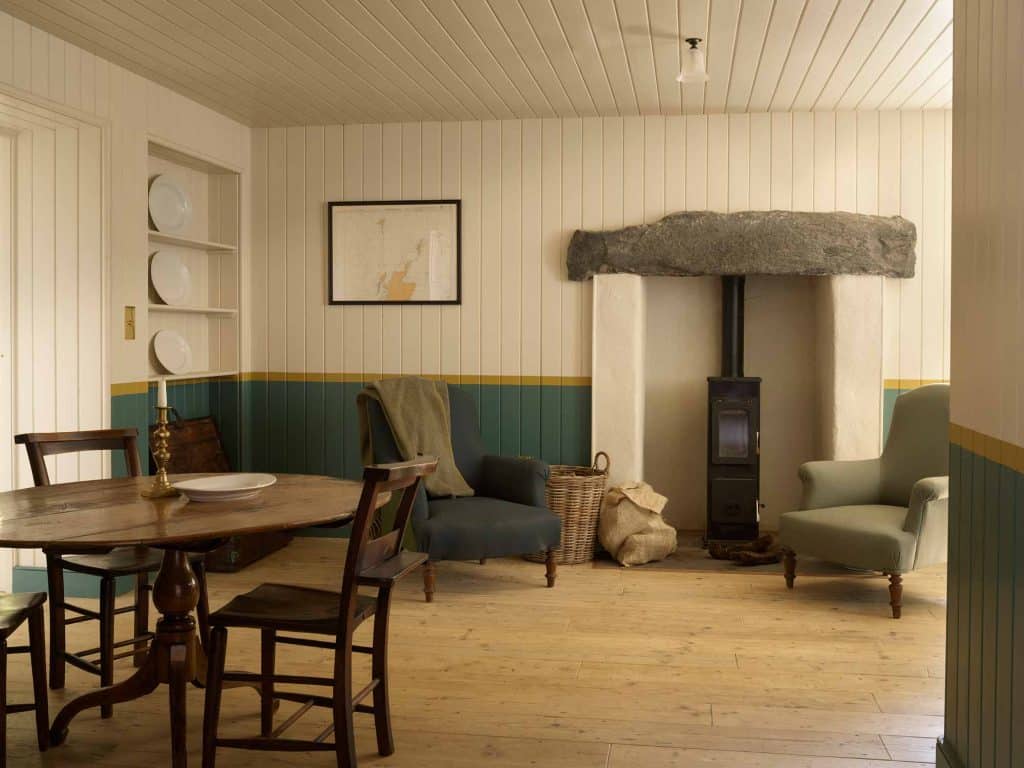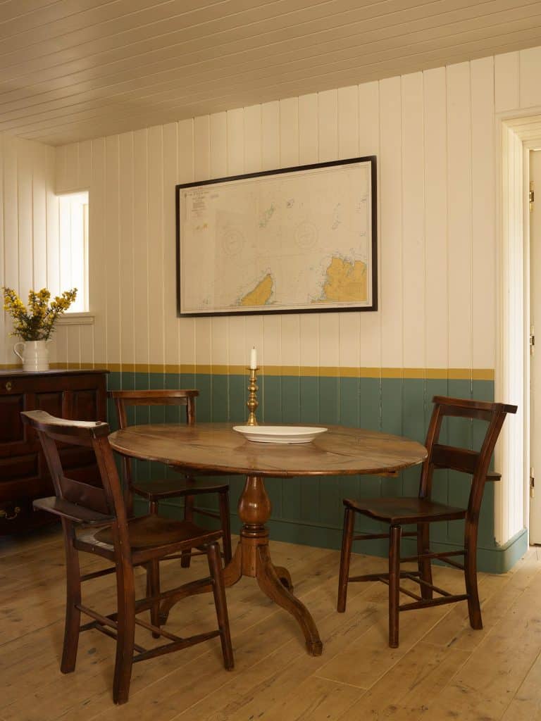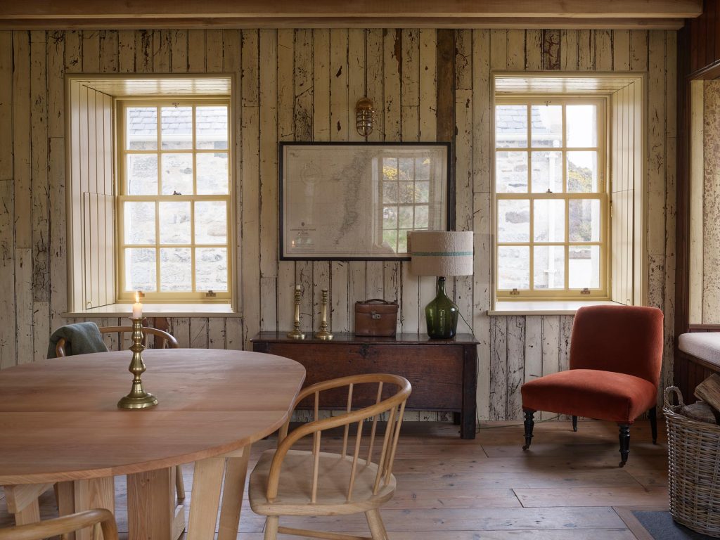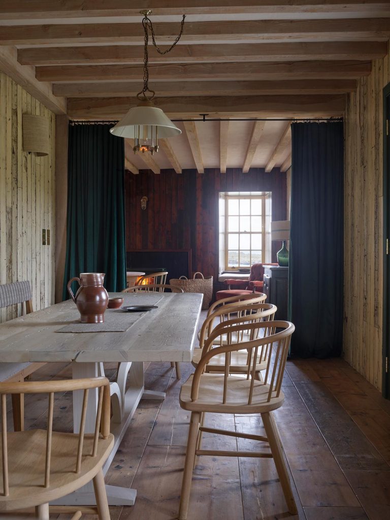 Working with conservation architect Lachie Stewart—a Highlander, who understands the plain, but polite laird’s-house vernacular, Retrouvius helped restart the essential dialogue between tradition and modernity. We were keen not to default to the furnishing language of Scandi-modernism but to create an interior that kept the island’s spirit: modest and unpretentious.