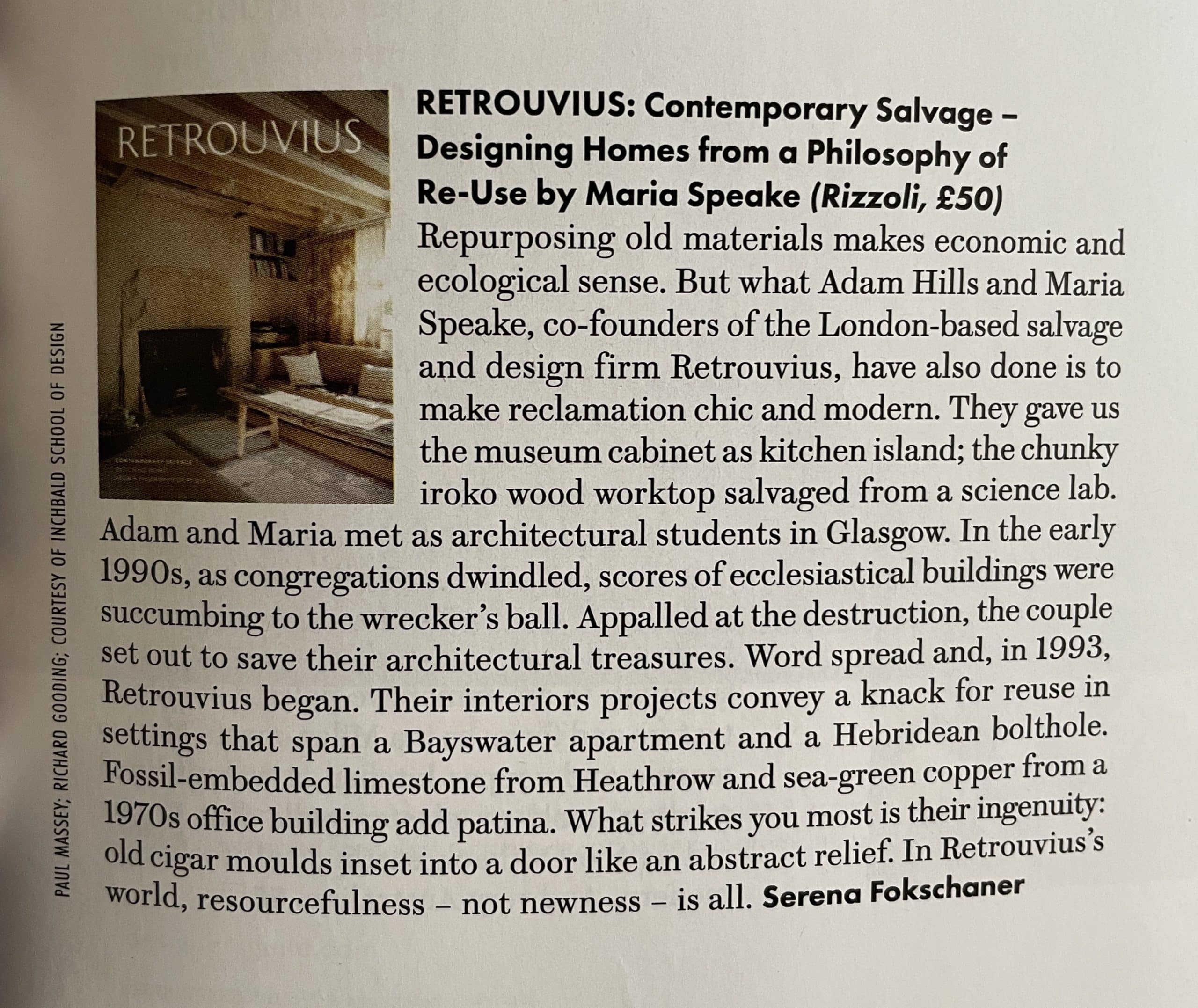 From the Financial Times, to the design press, reviewers have reflected on the values at the heart of Retrouvius – salvage, reuse and the soulful afterlife of materials. Their responses have sparked conversations we hoped the book might inspire and we’re grateful to see these ideas resonating beyond our studio walls.